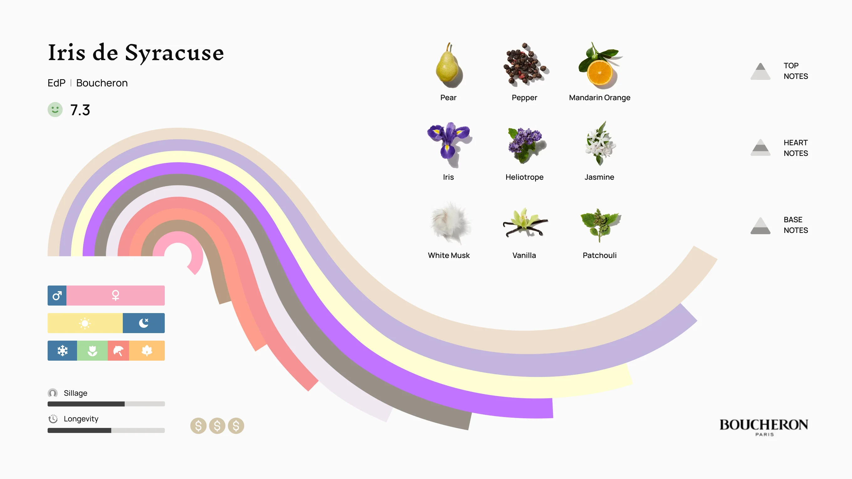 In the digital space, perfume retail and review websites are perhaps the most common places where fragrances need to be described. Their primary goal is to attempt to accurately and attractively communicate olfactory experience, but even though their commercial success often depends on how successfully that is done, these platforms often lack innovation and creativity in their approach. As a frequent user, I often struggle to quickly get a clear impression of the perfumes they feature.